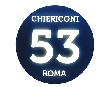 La società CHIERICONI 53 SRL ha deciso di rinnovare la propria insegna inserendo il logo ( 53 Roma ) per rendersi riconoscibile alla propria clientela.